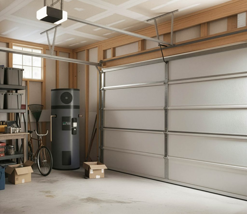 Many HPWHs can be installed in the same location as an existing electric or gas water heater using existing plumbing connections. Because the system pulls heat from the surrounding air, most models require about 1,000 cubic feet of air space, making garages and basements ideal installation locations.